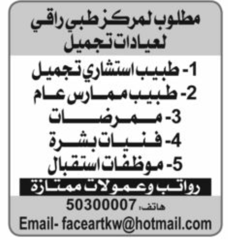 A state-of-the-art medical center in Kuwait has announced vacancies with excellent salaries and commissions
